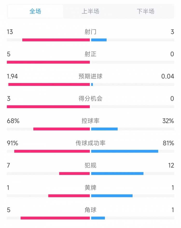 除特別注明外,本站所有內(nèi)容均為24直播網(wǎng)整理排版,轉(zhuǎn)載請(qǐng)注明出處:阿森納vs伊普斯維奇數(shù)據(jù):射門13比3、射正5比0、控球率68%比32%