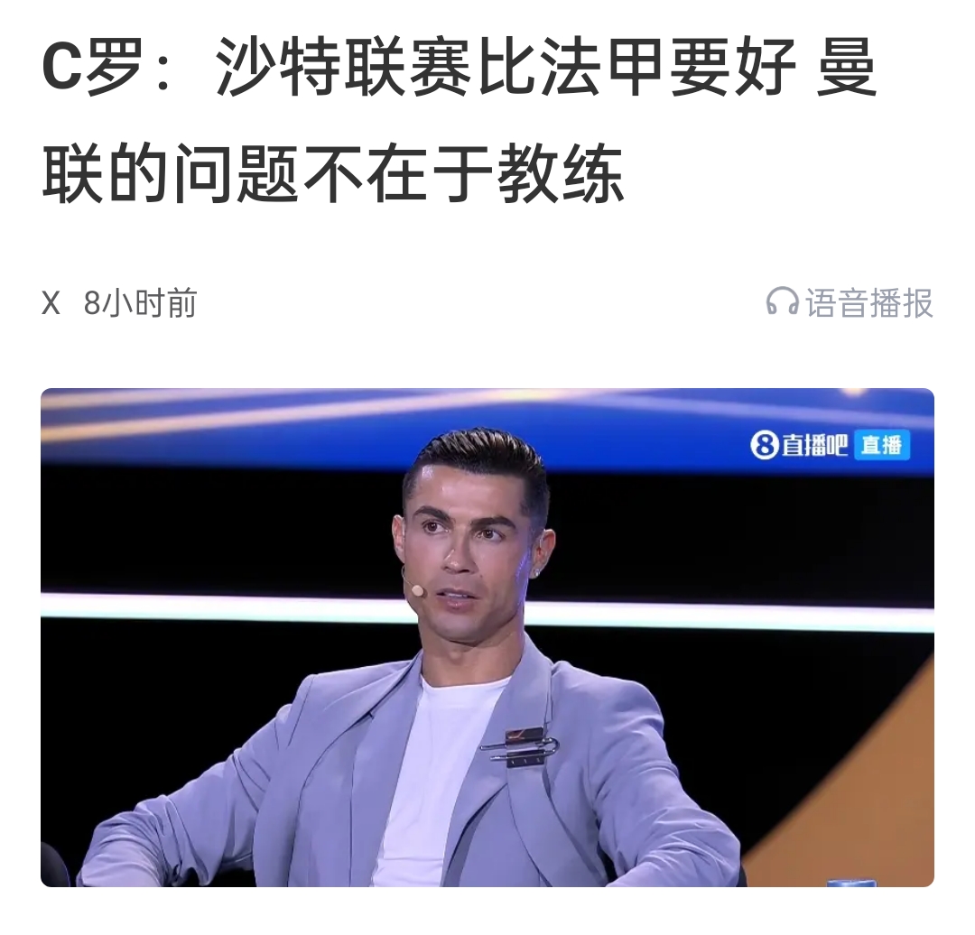 C羅在今日的環(huán)足獎(jiǎng)?lì)C獎(jiǎng)典禮上表示沙特聯(lián)比法甲更好。在今年年初的環(huán)足獎(jiǎng)?lì)C獎(jiǎng)典禮上,C羅就已經(jīng)說過相同的觀點(diǎn)。