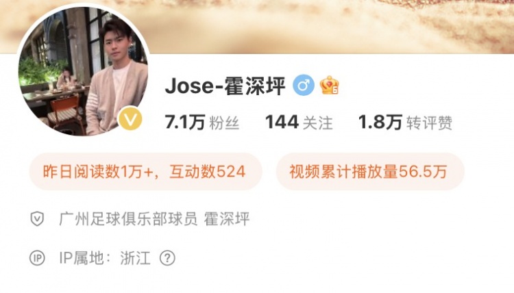 21歲的霍深坪,出自恒大足校,共為廣州隊出場51次,其中12次完成零封。目前,霍深坪的社媒IP地址顯示他已經(jīng)人在浙江。