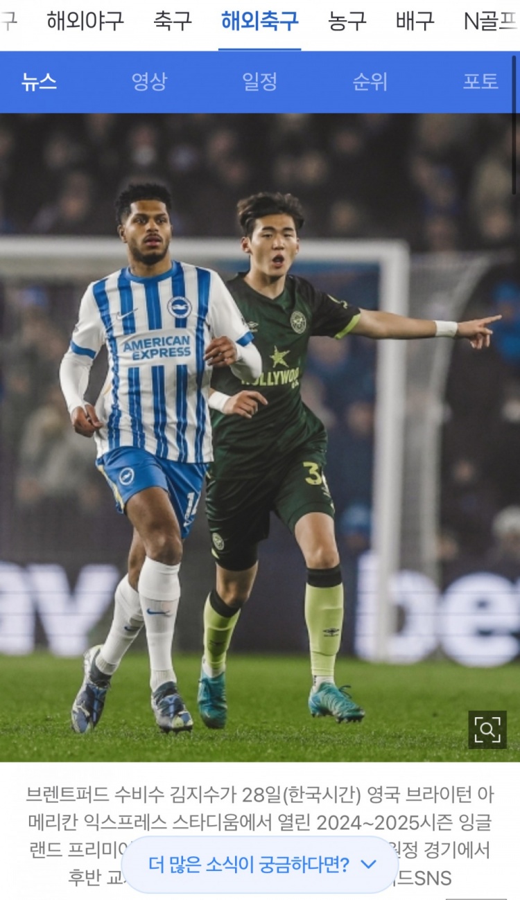 布倫特福德客場0-0戰(zhàn)平布萊頓的比賽中,24日剛剛度過20歲生日的金志樹在下半場尾聲階段替補(bǔ)登場,完成了個(gè)人英超生涯首秀。