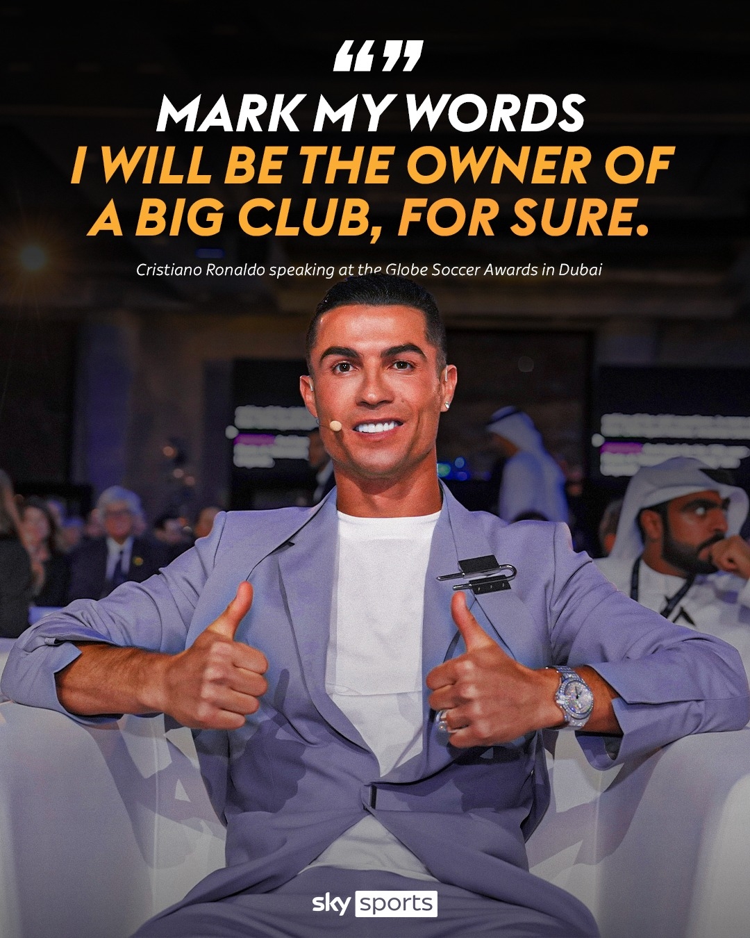 在2024環(huán)球足球獎(jiǎng)?lì)C獎(jiǎng)典禮上,C羅采訪中親承自己未來(lái)“肯定會(huì)成為一家大俱樂(lè)部的老板”,此話一時(shí)間引發(fā)球迷無(wú)限遐想……
