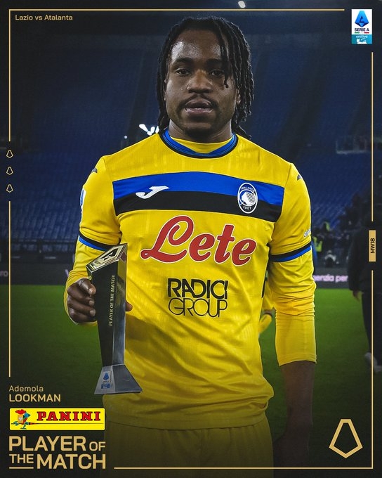 意甲官方曬出盧克曼領(lǐng)獎的照片,宣布他當(dāng)選本場比賽全場最佳球員。