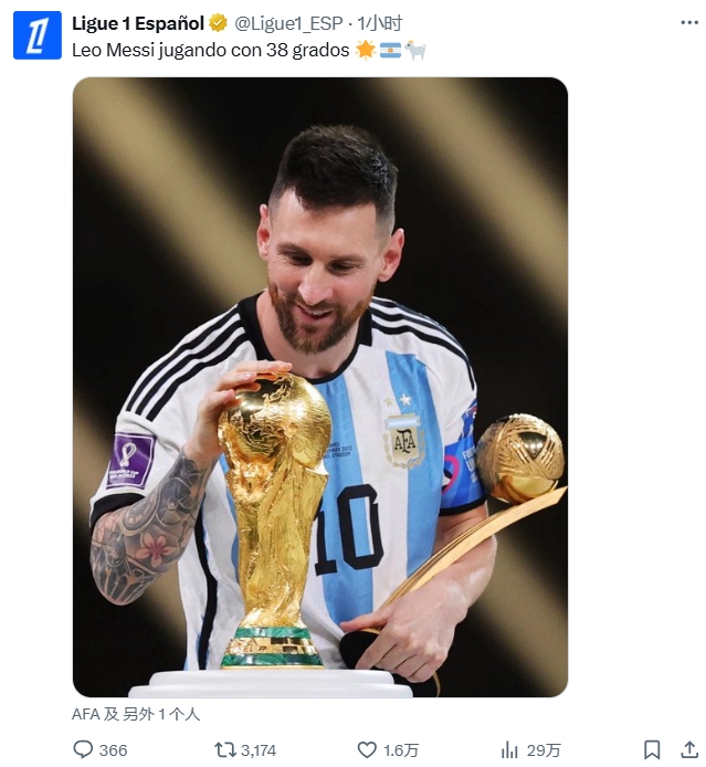 12月29日訊 昨日的環(huán)足頒獎典禮,C羅再次表示沙特聯(lián)比法甲更好,并提到在沙特踢球時氣溫高達38、39度。法甲西語官推曬出梅西撫摸大力神杯的照片回擊C羅:“梅西在38℃高溫下踢球