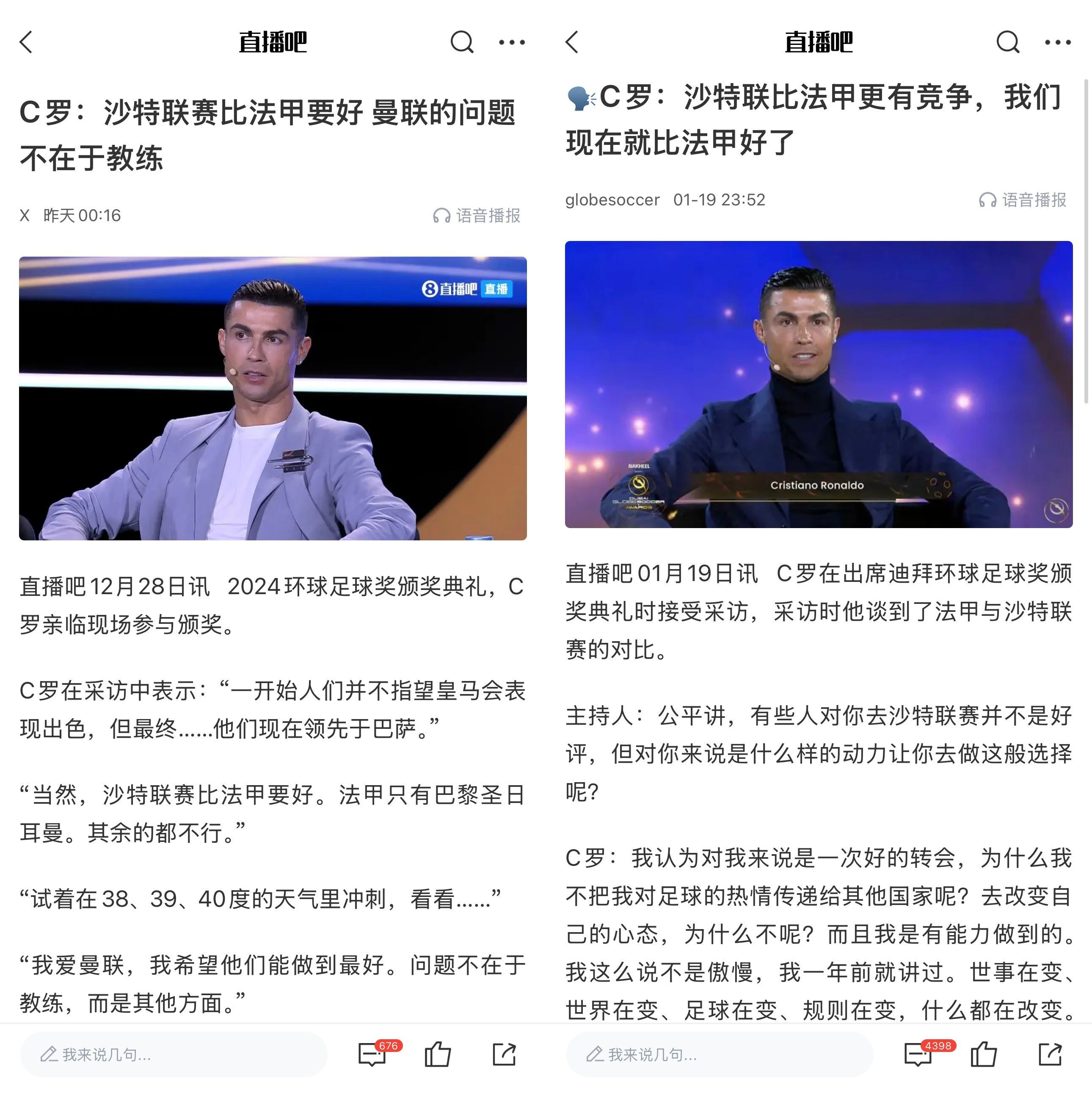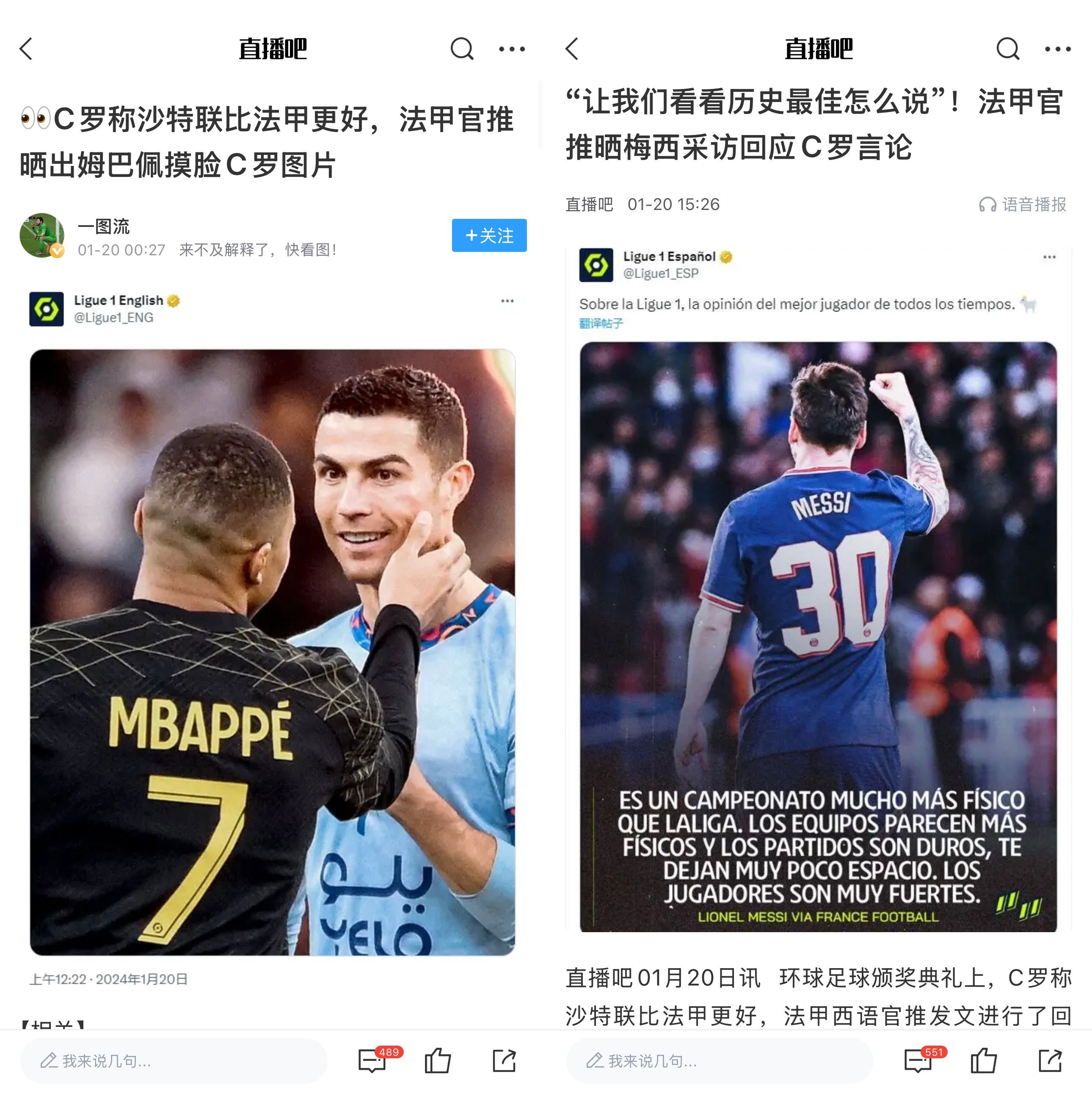 除特別注明外,本站所有內(nèi)容均為24直播網(wǎng)整理排版,轉(zhuǎn)載請(qǐng)注明出處:杠上了C羅2次說(shuō)沙特聯(lián)>法甲,法甲官推4次回?fù)?3次搬出梅西