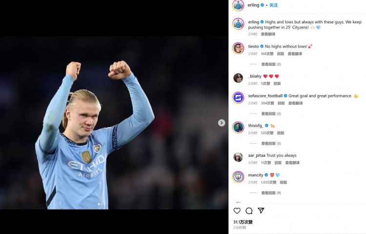 他也在賽后通過社媒曬出自己振臂慶祝的照片,并配文:“經(jīng)歷起起伏伏,但總和大家團(tuán)結(jié)在一起。城民們,我們?cè)?025年繼續(xù)一起努力。”