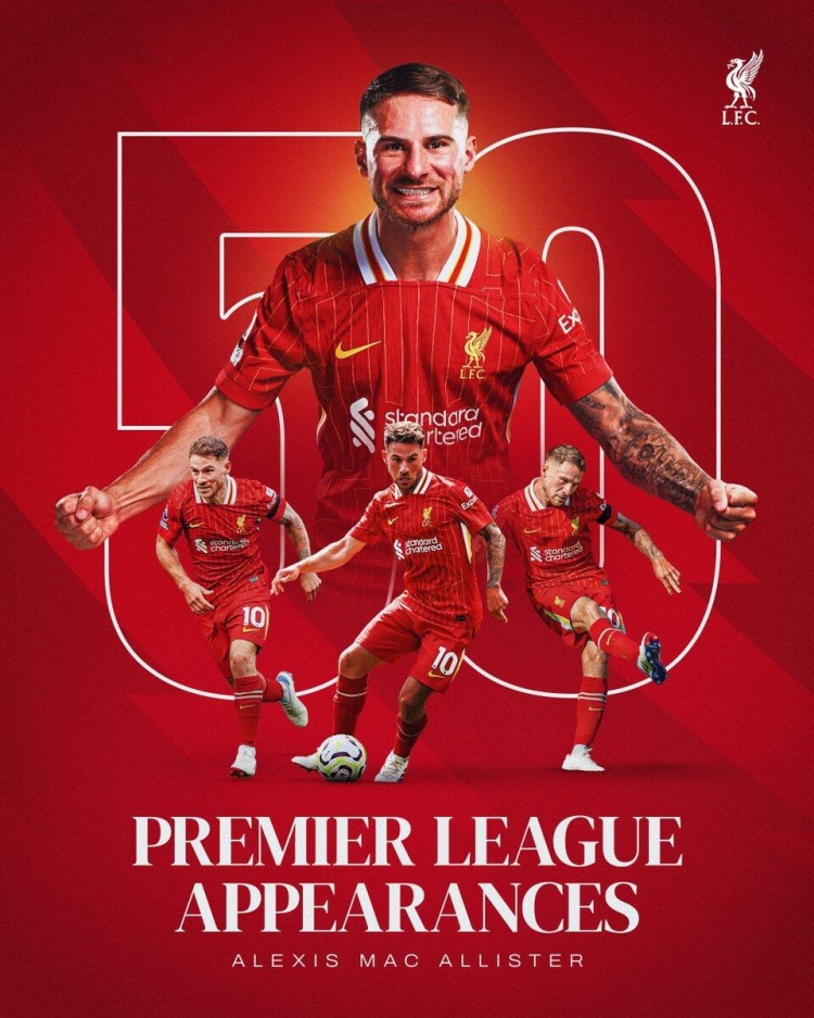 英超第19輪,利物浦客場(chǎng)挑戰(zhàn)西漢姆,阿根廷中場(chǎng)麥卡利斯特首發(fā)出戰(zhàn),這也是他代表利物浦出戰(zhàn)的第50場(chǎng)英超,他此前49場(chǎng)比賽貢獻(xiàn)6球7助攻。