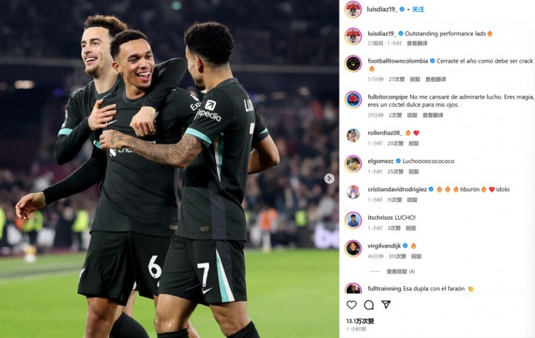 12月30日訊 利物浦在本輪英超5-0大勝西漢姆,阿諾德、迪亞斯和若塔均取得進球。三人也都在賽后通過社媒曬照紀念。