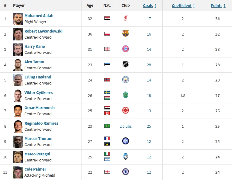 除特別注明外,本站所有內(nèi)容均為24直播網(wǎng)整理排版,轉(zhuǎn)載請注明出處:誰能笑到最后?歐洲金靴排名:薩拉赫躍居頭名,萊萬、凱恩二三