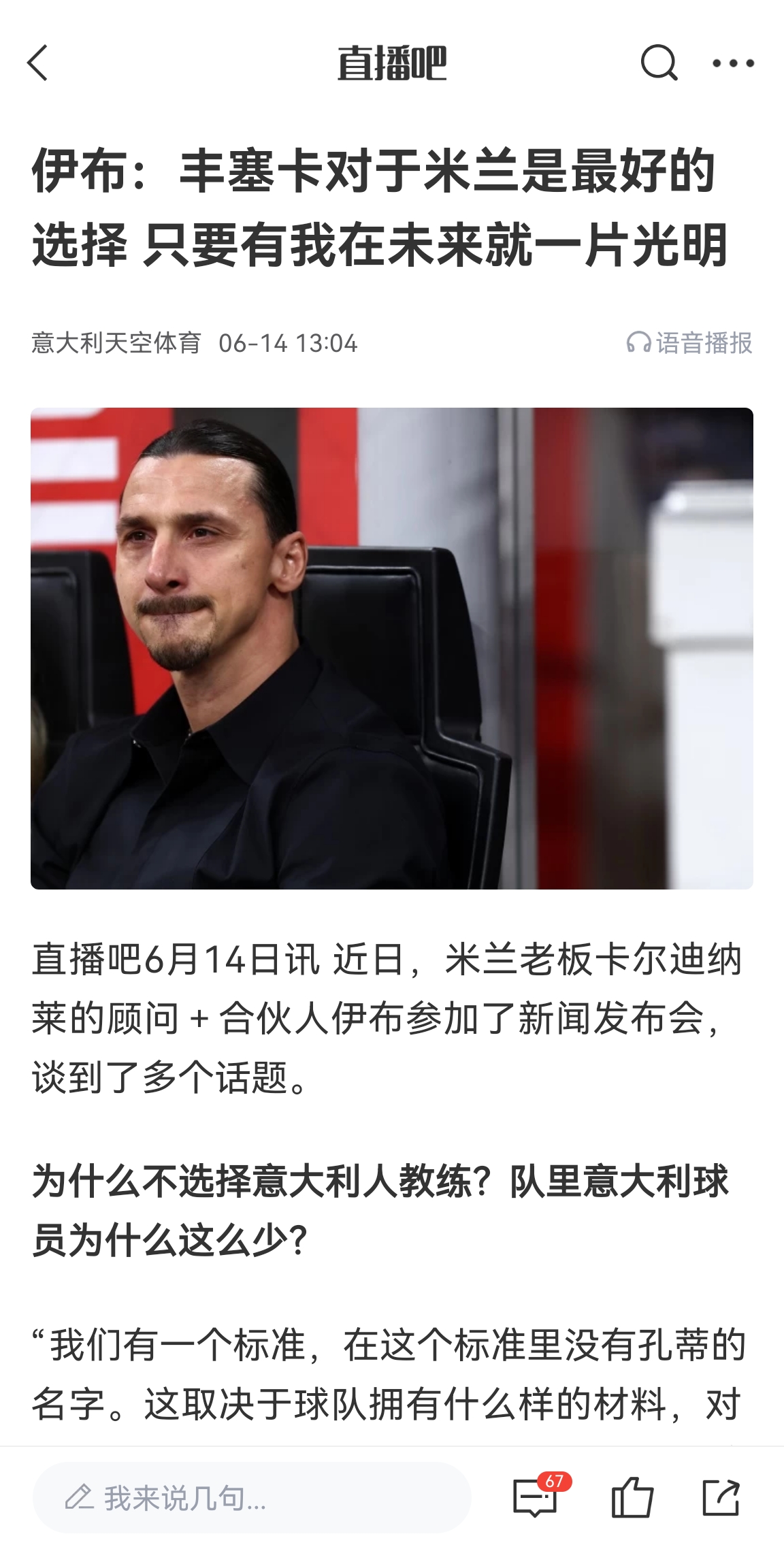 伊布表示:“我們有一個標準,在這個標準里沒有孔蒂的名字。這取決于球隊擁有什么樣的材料,對于我們的球隊來說,最好的人選就是豐塞卡。我們想要一個身份,擁有一個適合這支米蘭并且能夠繼續(xù)進步的教練很重要。”