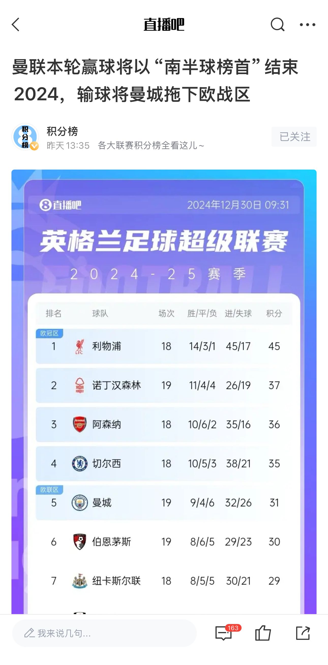 曼聯(lián)選了這個曼聯(lián)主場0-2負紐卡,曼城再次被擠出歐戰(zhàn)區(qū)