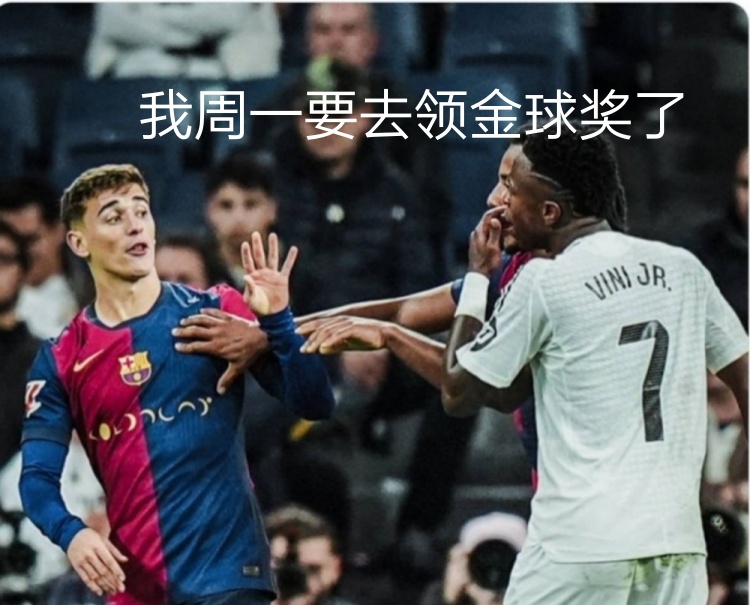 在國家德比上,面對加維伸出4根手指的嘲諷,維尼修斯微微一笑,說出了那句本該是完美的回?fù)簟拔抑芤灰ソ鹎蝾I(lǐng)獎了”。