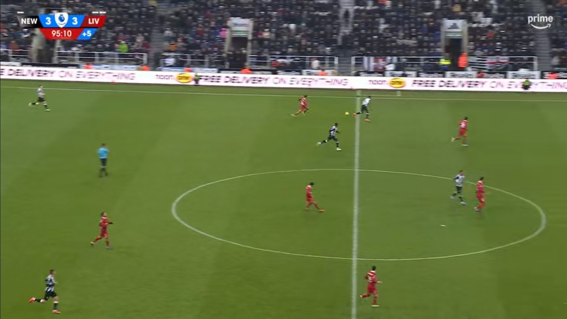 英超第14輪,紐卡3-3利物浦,比賽補(bǔ)時(shí)5分鐘,剛過95分鐘,紐卡門將波普手拋球發(fā)動(dòng)反擊,紐卡反擊剛過半場,主裁便吹響了全場結(jié)束的哨聲,紐卡多人不滿圍住裁判討說法,波普抗議染黃。