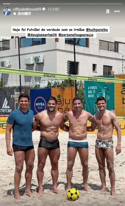 12月31日訊 艾克森更新社媒,曬出了他與胡爾克等人在沙灘足球場上的合影。