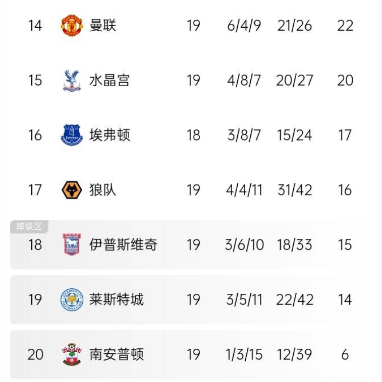 12月31日訊 英超第19輪,曼聯(lián)主場(chǎng)0-2紐卡,聯(lián)賽3連敗后已經(jīng)滑落到第14名,距離英超降級(jí)區(qū)僅高出7分,并且下一輪還要迎來與利物浦的對(duì)話。