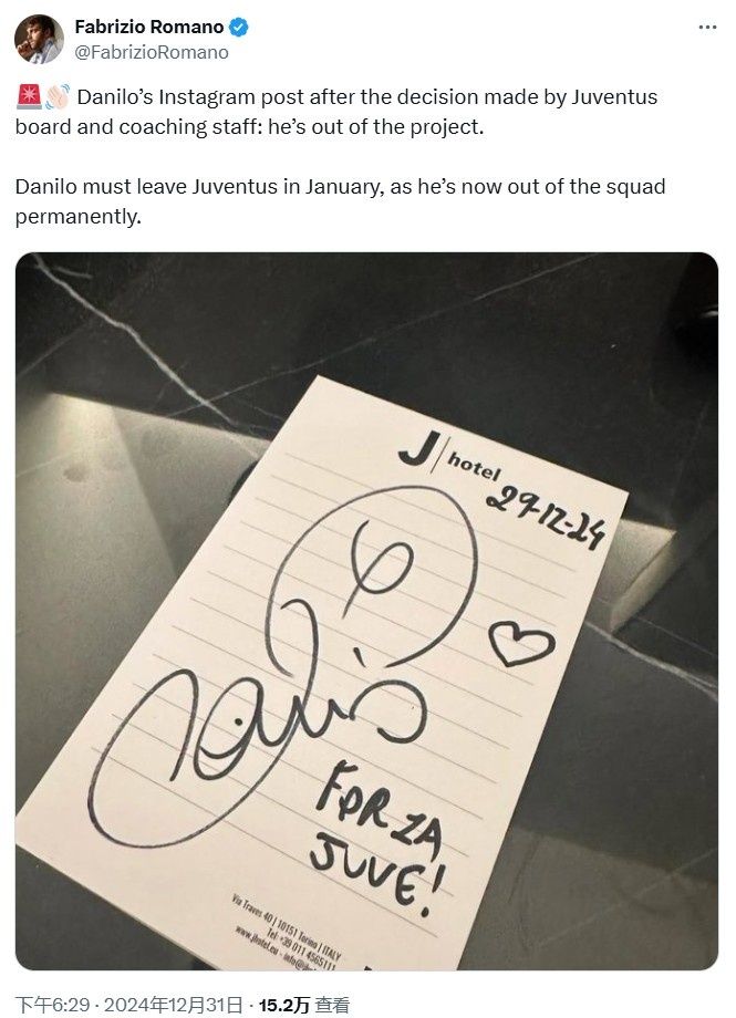 羅馬諾在社交媒體上這樣寫道:“在尤文圖斯董事會和教練組做出決定后,達(dá)尼洛在Instagram上發(fā)布消息:他退出俱樂部的項(xiàng)目?!?/p>