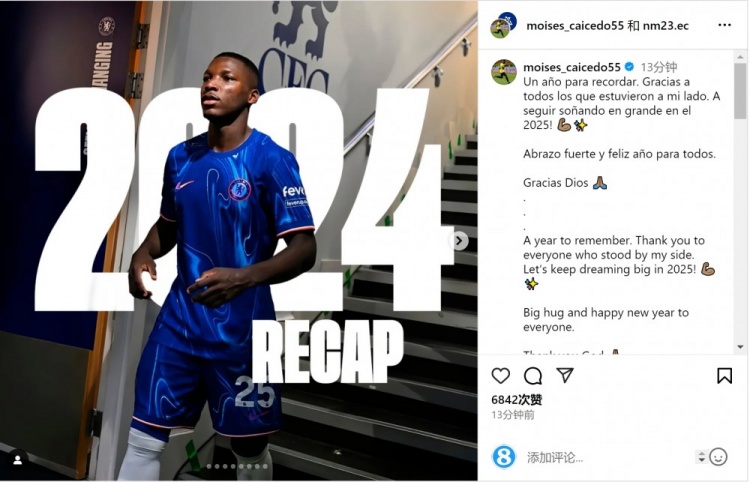 凱塞多在社交媒體上寫道:“值得記住的一年,感謝所有支持我的人,讓我們?cè)?025年繼續(xù)放飛夢(mèng)想!”