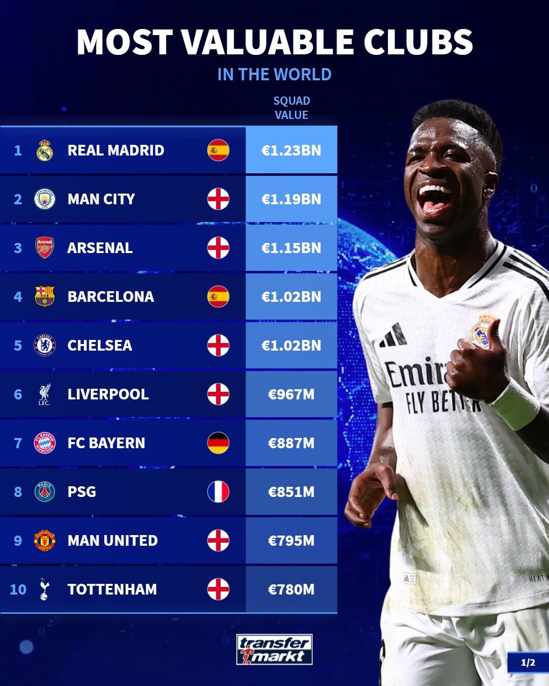 1、皇馬 12.3億歐