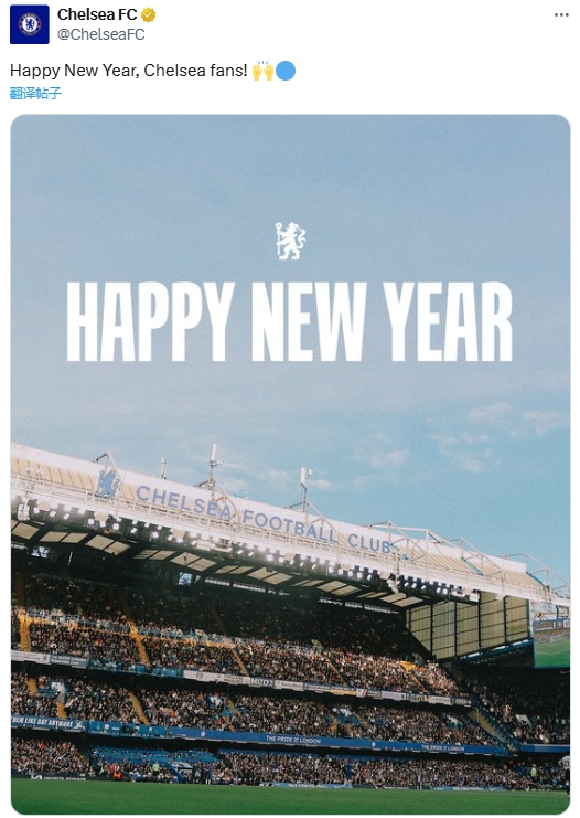 車迷新年快樂!英國時(shí)間0點(diǎn)剛過,切爾西官方發(fā)文祝賀新年