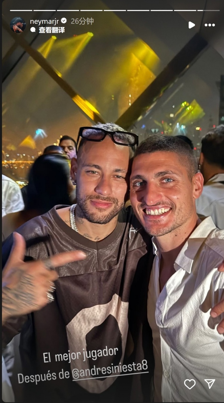 內(nèi)馬爾與維拉蒂一起跨年,他在社交媒體上曬出合照,并配文:“伊涅斯塔之后最好的(中場(chǎng))球員,維拉蒂?!?/p>