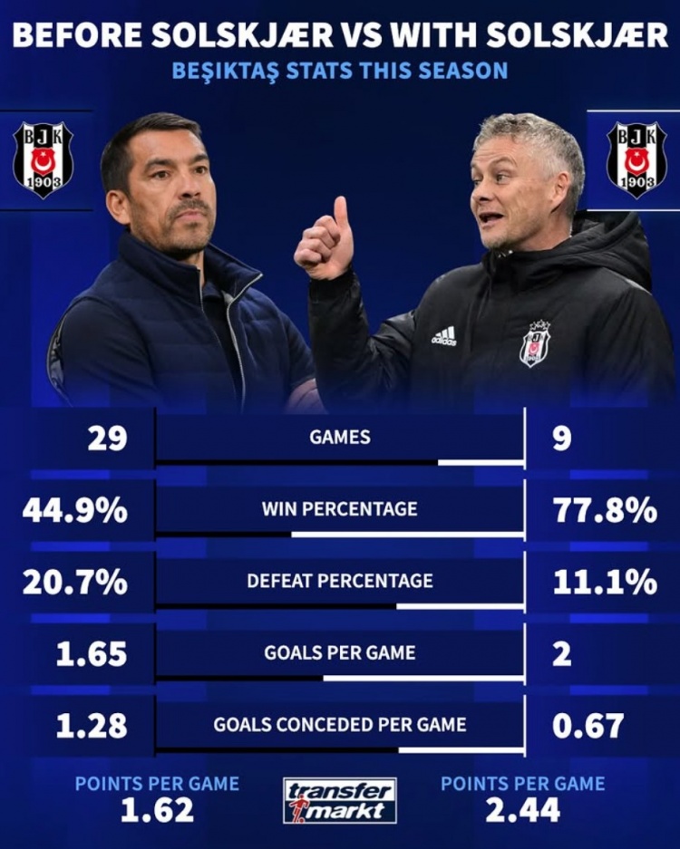 3月10日訊 貝西克塔斯在上輪土超2-0力克開賽利體育,延續(xù)了索帥上任后的出色表現(xiàn)?!掇D(zhuǎn)會市場》也對比了貝西克塔斯在這位前曼聯(lián)主帥上任前后的關(guān)鍵數(shù)據(jù)。