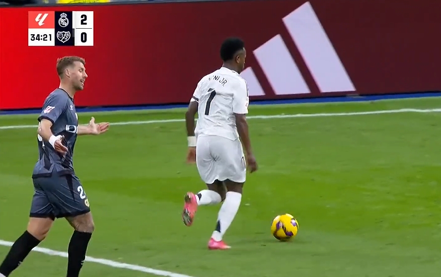 - 維尼修斯把對手逼成什么樣了?巴列卡諾兩人撞車,一人攤手