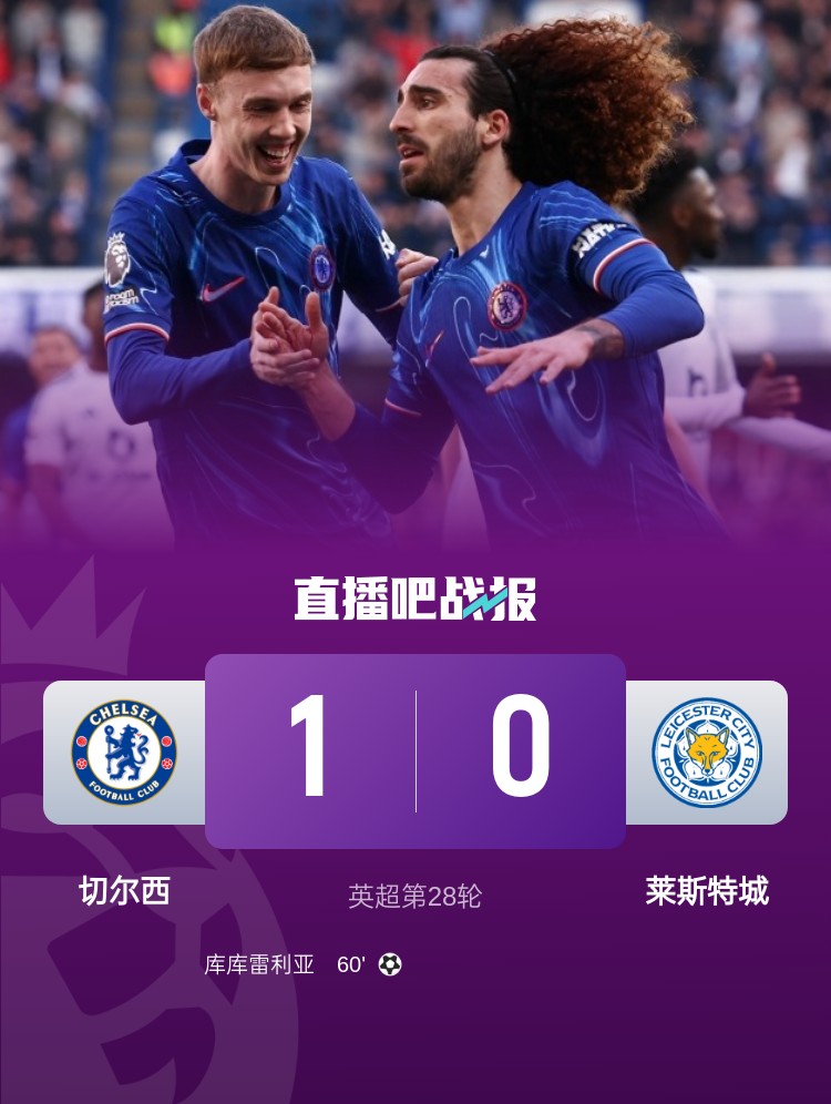 切爾西1-0擊敗萊斯特城,庫庫雷利亞打入全場唯一進(jìn)球。