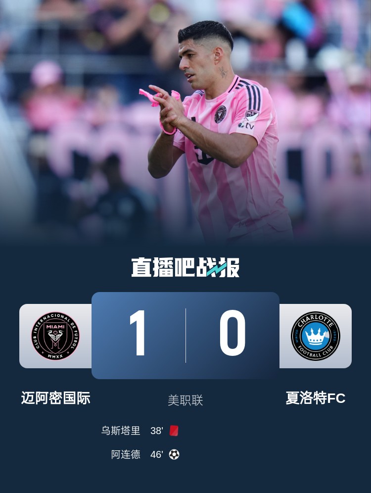 美職聯(lián)本輪邁阿密國際1-0擊敗夏洛特FC,梅西替補未出場,阿連德破門,蘇亞雷斯助攻。