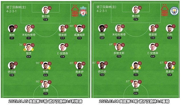 憑借赫德森-奧多伊的精彩進(jìn)球,諾丁漢森林主場擊敗曼城,從直接競爭對手那里奪得了價值連城的“六分”,在Big6球隊身上拿分已經(jīng)成為這支球隊的常規(guī)操作。聯(lián)賽上半程,諾丁漢森林主場送給利物浦賽季唯一敗仗,客場戰(zhàn)平切爾西,從狀態(tài)不佳的曼聯(lián)和熱刺那里賺足6分,踢到第17輪時所取得積分便已經(jīng)超過了上賽季的分?jǐn)?shù)(32分)。