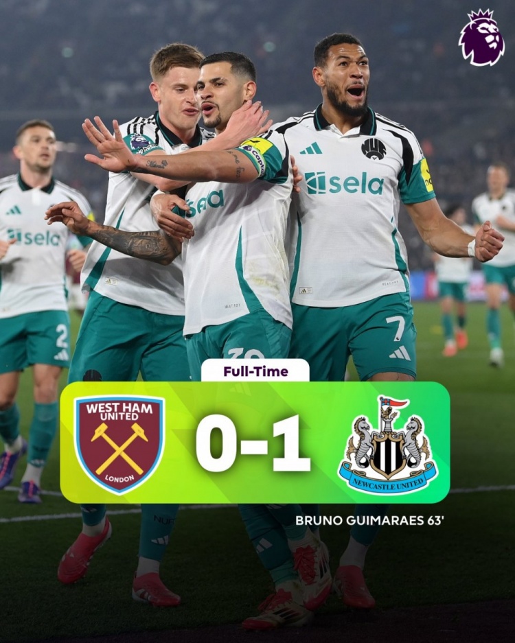 3月11日訊 今天凌晨英超第28輪最后一場(chǎng)比賽,西漢姆聯(lián)主場(chǎng)對(duì)陣紐卡。最終憑借著吉馬良斯的下半場(chǎng)制勝進(jìn)球,紐卡斯?fàn)柨蛨?chǎng)1-0擊敗西漢姆聯(lián)。