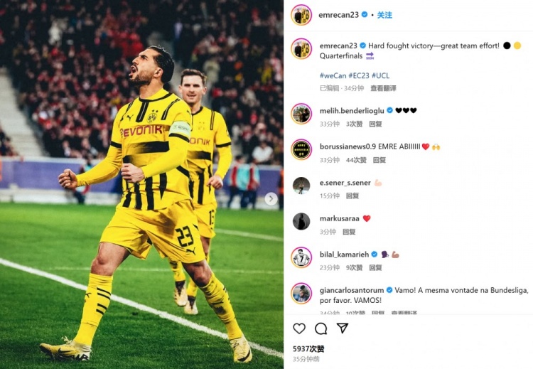 埃姆雷-詹也在賽后通過社媒曬出了自己的怒吼慶祝照,并配文:“全隊(duì)努力鏖戰(zhàn)贏下勝利??