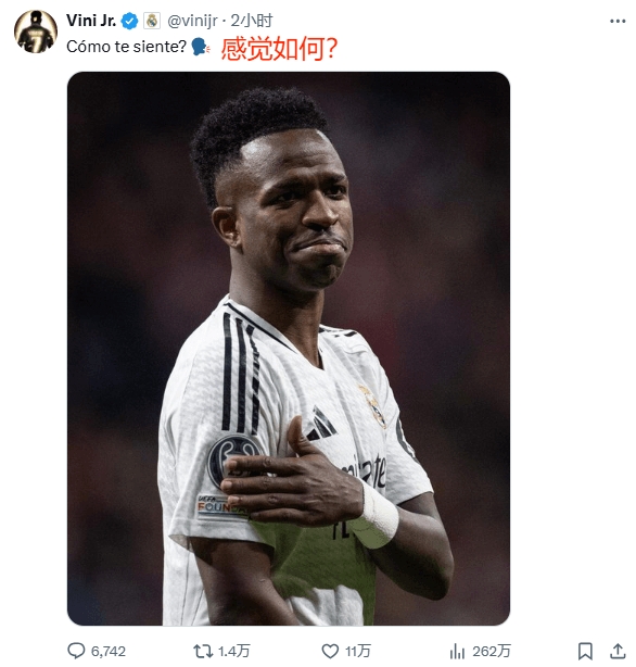 賽后維尼修斯在社媒連續(xù)更新4條動態(tài)(推特3條,ins1條)。