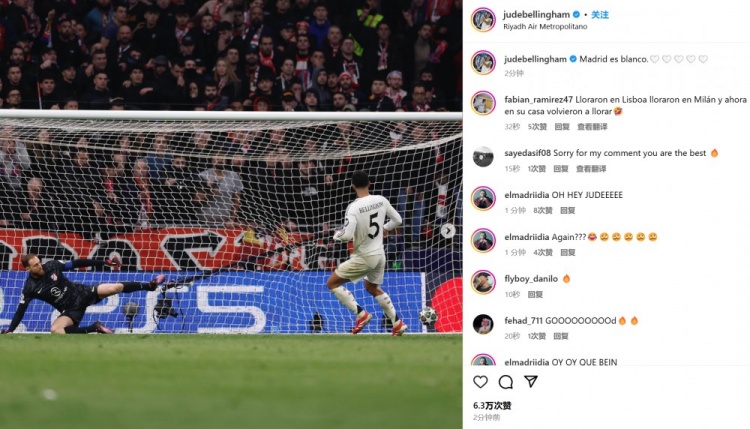 他在點(diǎn)球大戰(zhàn)成功命中,也在賽后通過社媒曬出破門瞬間照,并配文:“馬德里是白色的