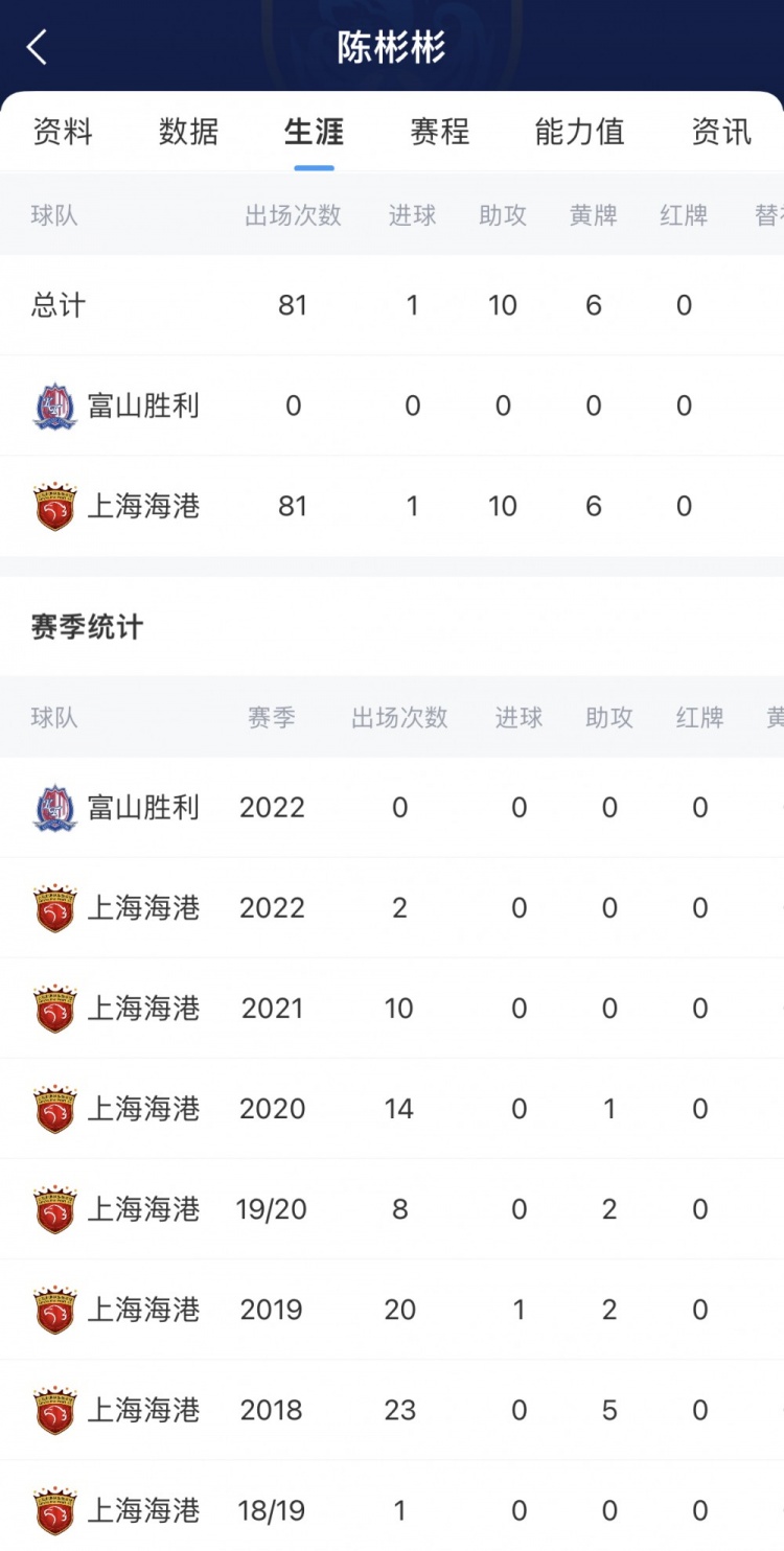 陳彬彬出生于1998年,今年6月將滿27歲,場上司職左前衛(wèi)和左翼衛(wèi)。此前他在上海海港(上港)效力多年,也曾到日本J3聯(lián)賽留洋。上賽季結束后,陳彬彬離開海港,隨后加盟南通支云。