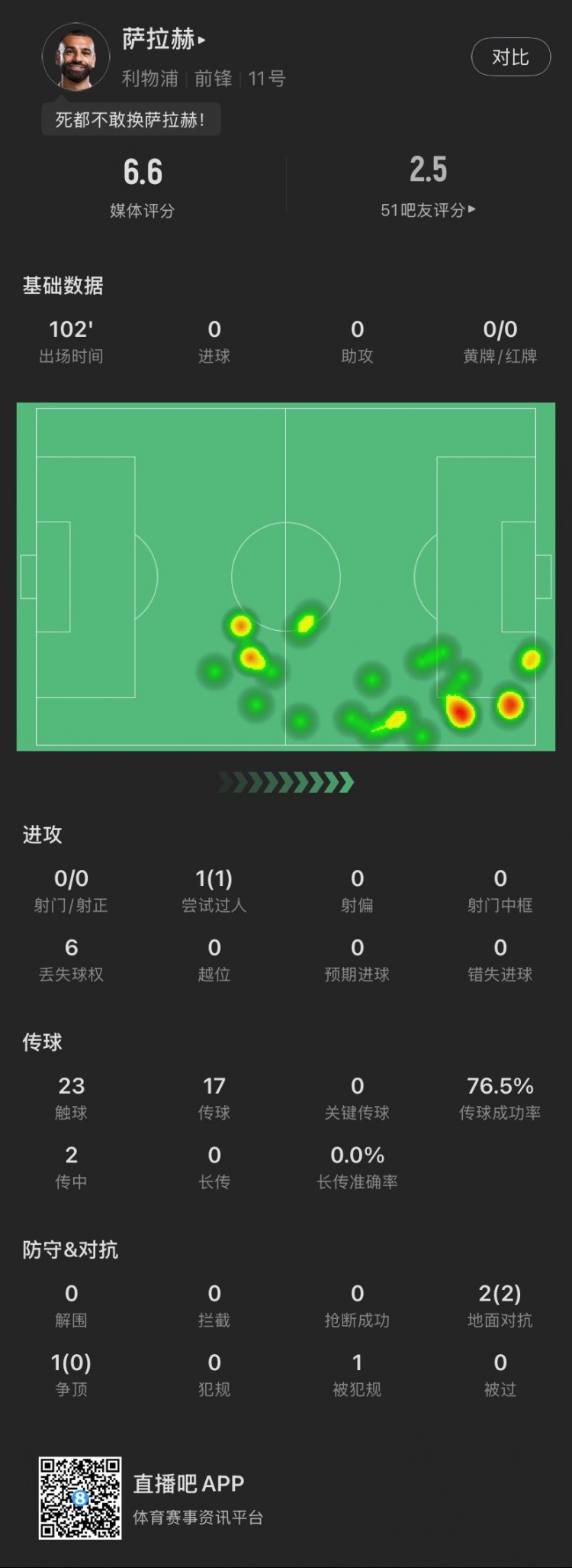 除特別注明外,本站所有內(nèi)容均為24直播網(wǎng)整理排版,轉(zhuǎn)載請(qǐng)注明出處:齋月的鍋?薩拉赫為紅軍打滿全場(chǎng)但0射門,23年對(duì)陣曼城以來首次