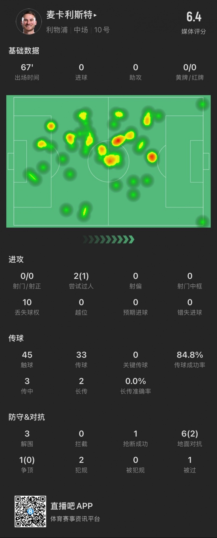 除特別注明外,本站所有內(nèi)容均為24直播網(wǎng)整理排版,轉(zhuǎn)載請(qǐng)注明出處:麥卡本場:7次對(duì)抗成功2次,貢獻(xiàn)3解圍1搶斷,2犯規(guī),僅獲評(píng)6.4分