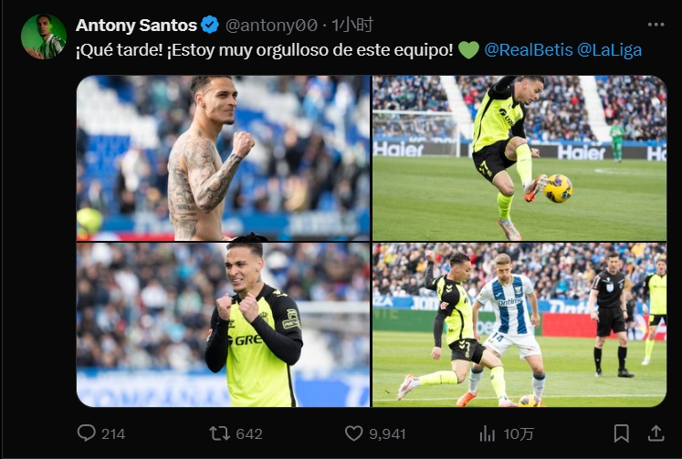 03月17日訊 在剛結束的西甲第28輪,皇家貝蒂斯客場3-2逆轉(zhuǎn)萊加內(nèi)斯的比賽最后時刻,安東尼在比賽最后時刻策動球隊進攻,助貝蒂斯絕殺對手。