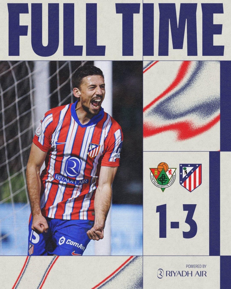 國王杯第2輪,馬競3-1卡些連奴。上半場,梅倫西奧進(jìn)球,馬競圍攻無果;下半場,朗格萊頭球扳平,桑喬犯規(guī)兩黃變一紅被罰下,西蒙尼抱怨裁判被裁判出示紅牌,補時德保羅造烏龍反超比分,阿爾瓦雷斯錦上添花。