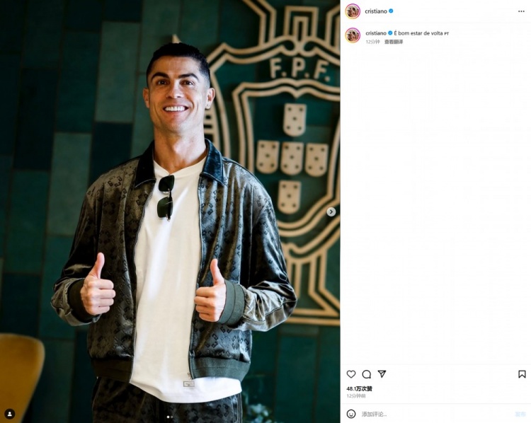 C羅抵達(dá)葡萄牙國(guó)家隊(duì),在社媒曬出照片,寫道:回來真好