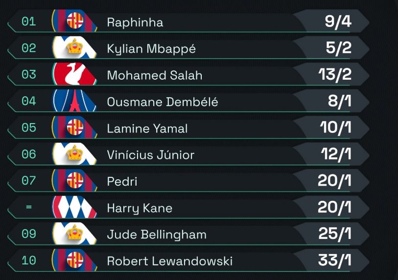 除特別注明外,本站所有內(nèi)容均為24直播網(wǎng)整理排版,轉(zhuǎn)載請注明出處:金球獎賠率:拉菲尼亞居首、姆巴佩第二,皇薩球員7人進前十