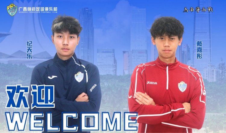 ?廣西恒宸足球俱樂(lè)部歡迎紀(jì)天樂(lè)、戴嘉彤的加盟,讓我們一起為新賽季共同努力,為球迷們奉獻(xiàn)更多精彩比賽!