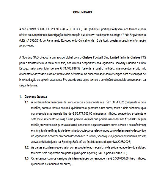 03月20日訊 葡萄牙體育官方消息,昆達、埃蘇戈將加盟切爾西,兩人轉(zhuǎn)會費共計7400萬歐。