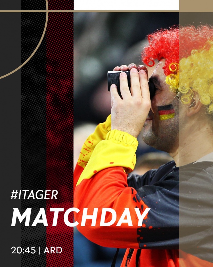 德國隊(duì)官方社媒發(fā)布海報(bào)預(yù)熱這場比賽,海報(bào)內(nèi)容為德國球迷手拿望遠(yuǎn)鏡觀賽的場景。