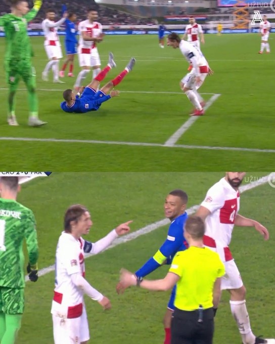 3月21日訊 歐國聯(lián)1/4賽決賽首回合,克羅地亞2-0法國。比賽中,姆巴佩禁區(qū)突破倒地,莫德里奇立即跑到姆總面前說:“別假摔!”