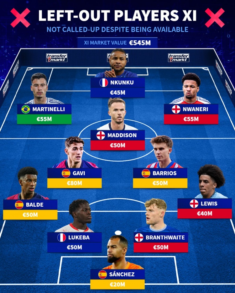 落選國家隊陣容(總價5.45億歐,不包含傷缺球員):