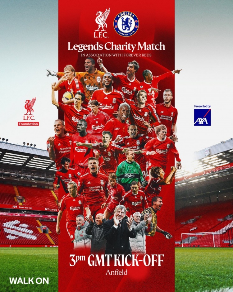 3月22日訊 利物浦傳奇隊(duì)將在安菲爾德的慈善賽中對陣切爾西傳奇隊(duì),利物浦官方社媒曬出海報,預(yù)熱這場比賽。