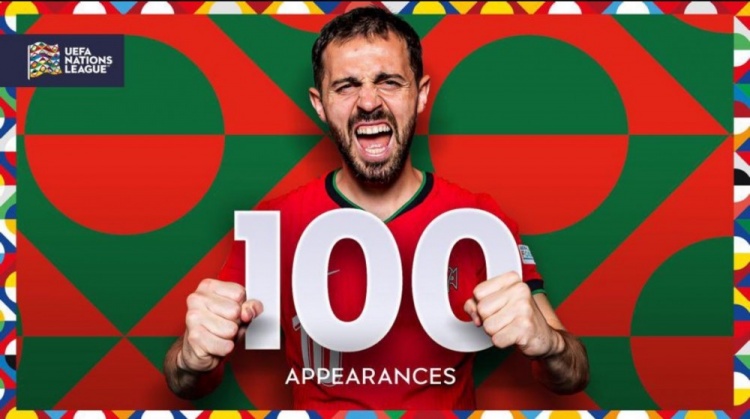 數(shù)據(jù)統(tǒng)計顯示,他也達成了葡萄牙隊100場里程碑,這位30歲的前腰在此前99場為葡萄牙隊貢獻13球28助攻。