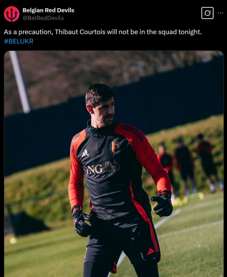 對(duì)此,比利時(shí)國(guó)家隊(duì)表示,作為預(yù)防措施,庫(kù)爾圖瓦沒(méi)有進(jìn)入比賽陣容。