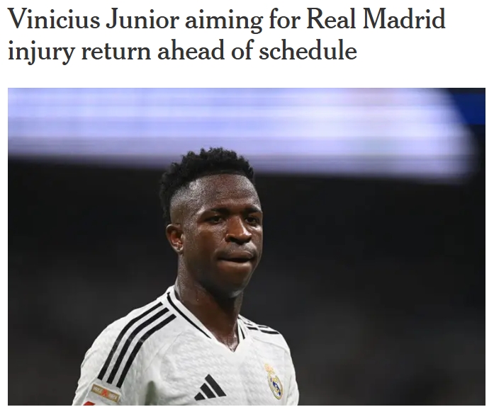 12月06日訊 據(jù)《The Athletic》消息,養(yǎng)傷中的維尼修斯腿筋傷勢恢復(fù)迅速,有望在下周中對陣亞特蘭大的歐冠比賽中復(fù)出。