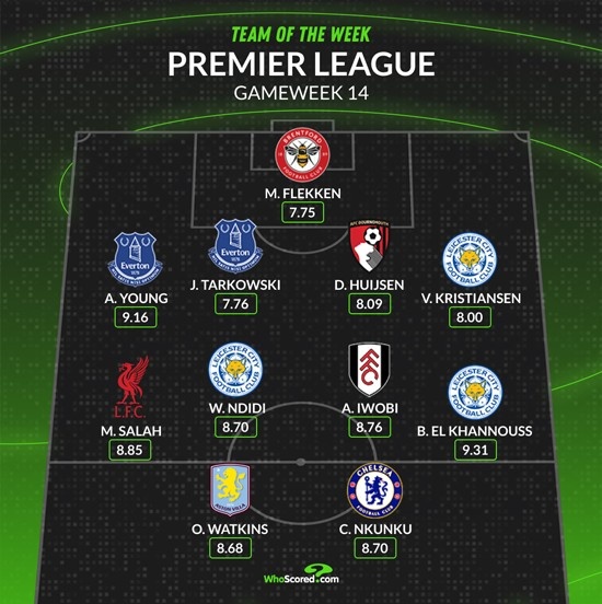 12月6日訊 英超第14輪比賽戰(zhàn)罷,WhoScored根據(jù)球員評分列出了本輪最佳陣容,薩拉赫、恩昆庫、阿什利-揚(yáng)、懷森在列。