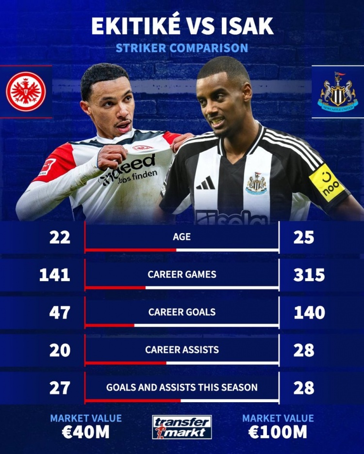 伊薩克(紐卡斯?fàn)枺?5歲):生涯315場(chǎng)140球28助攻,本賽季直接參與28球,德轉(zhuǎn)身價(jià)1億歐元